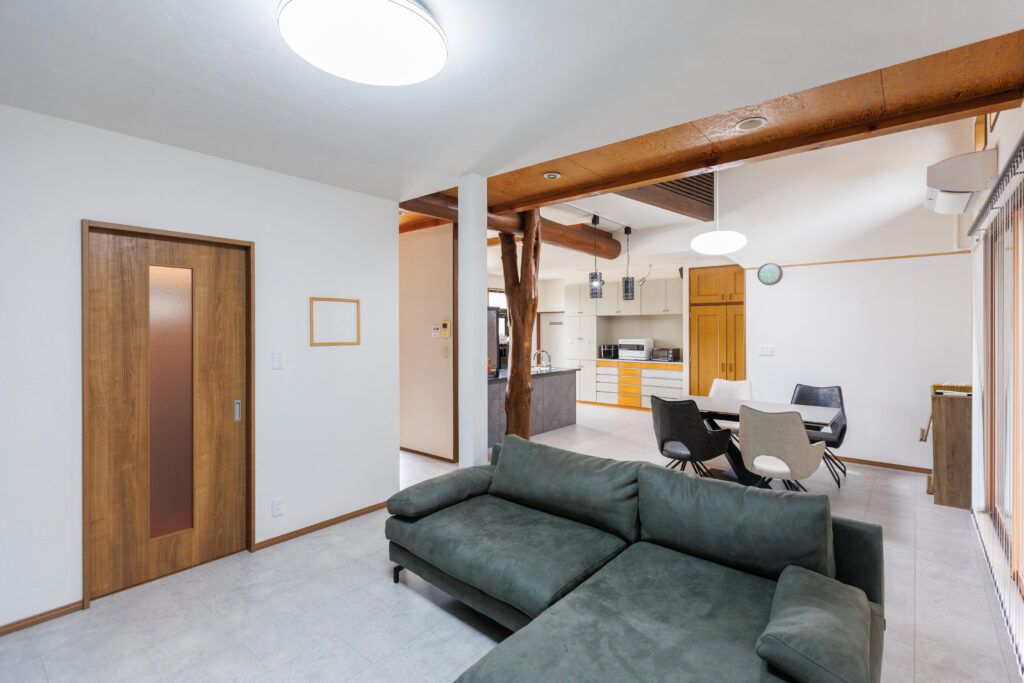 リビングの隣にある和室の壁や仕切りを取っ払って、つながりのある開放的なリビングに。